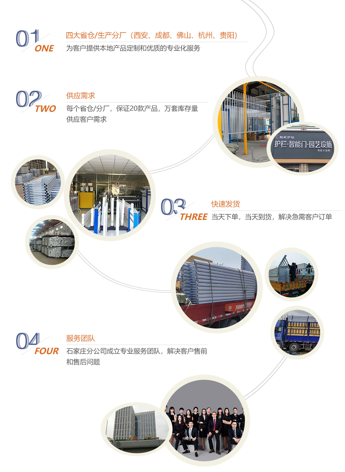 安平縣勝威金屬絲網制造有限公司創始于2005年,是防護柵欄市場的主要供應商之一,主要生產市政類,鋅鋼類,圍墻類,草坪類等。“安全、時尚、靠譜”是勝威的做事理念。公司堅持“以用戶為中心,為員工伙伴提供機會”為使命。